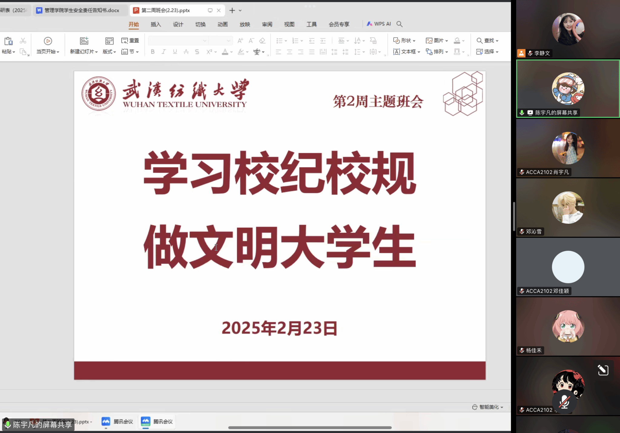 2024级各班主任组织学生召开“学习校纪校规,做文明大学生”主题班会,围绕《威廉希尔体育本科生考勤及请假管理办法》、《学生违纪处分办法》、《学生申诉处理办法》和《本科生勤工助学管理办法》等文件展开学习,详细解读了考勤制度、请假流程、违纪行为及处分、申诉程序以及勤工助学政策等内容,激励大家争做新时代优秀大学生,遵循校纪校规,绽放美好年华。