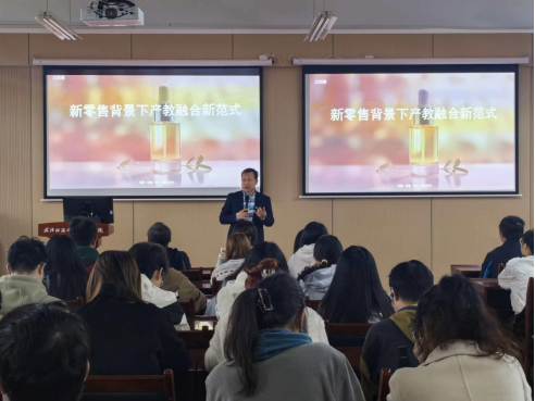 11月6日下午,威廉希尔体育在阳光校区7-513会议室举行智慧引航系列讲座之探索新零售背景下产教融合新范式暨三创赛实战赛道解析,讲座邀请广东省省级决策咨询研究基地—数字经济与产业融合发展研究中心执行主任漆贤军教授担任主讲嘉宾。威廉希尔体育执行院长吴金红、教师代表和100余名学生参加了本次活动,威廉希尔体育党委副书记兼副院长耿迪主持。