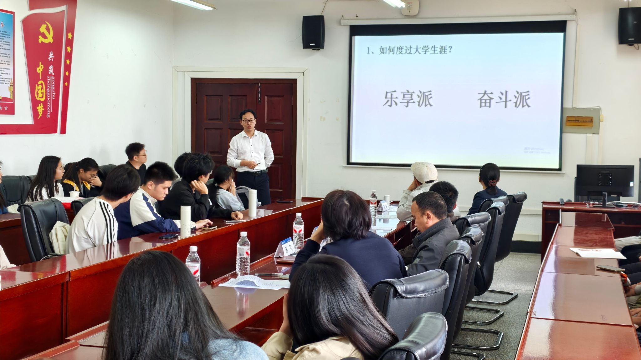 随后,张欲平结合自身求学经历、职业发展路径和工作实践,作《静待花开——大学生职业选择》主题分享,围绕“如何度过大学生涯”“如何奋斗在职场”“我们究竟该如何理解人的一生”三个方面,为同学们带来了一场兼具思想深度与现实温度的成长对话。谈及大学生活,张欲平回顾了自己在校期间的学习与实践经历,勉励同学们在深耕专业中筑牢根基,在知行合一中增长才干,在广泛阅读与深入思考中拓展视野,多读经典、多做研究、多与大师“对话”,不断涵养创造力、沟通力、判断力与审美力,让青春在沉潜与积淀中静待花开。