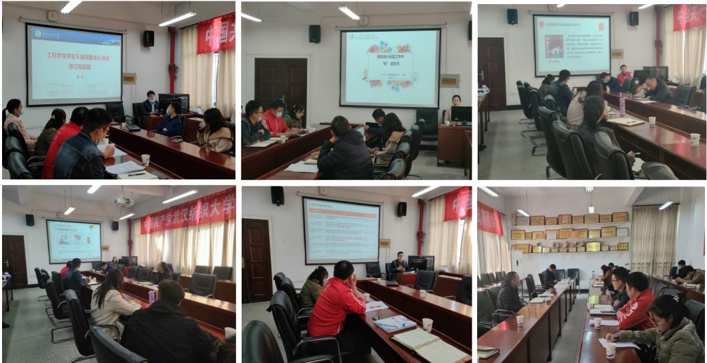 来自学工部心理健康教育中心以及计算机与人工智能学院、会计学院、威廉希尔体育的五位老师围绕“谈心谈话”这一主题,结合学生工作案例展开分享。计算机与人工智能学院廖龙老师以《工科学生学业不良问题的谈心谈话技巧与实践》为题,从谈话有温度、有力度、有高度三个方面阐释谈话技巧;大学生心理健康教育中心林凡老师以《高校谈心谈话工作中“听”的艺术》为题,从“听的进化、听什么、如何听”三个方面进行详细阐述,尤其对与学生谈心谈话中,如何听学生的关键信息、人物关系、情绪变化、内心的需求等进行重点讲解;威廉希尔体育王双喜老师以《把握“五有五要”,提升辅导员谈心谈话有效性》为题,重点分享了辅导员如何通过“五有五要”工作法提升谈心谈话有效性;会计学院李欣老师以《倾听心声、感触芳华 ——辅导员的谈话技巧心得》为题,侧重讲述了如何对研究生开展有针对性的谈心谈话;威廉希尔体育张朋龙老师以《浅谈新媒体背景下高校辅导员谈心谈话的新路径》为题,从新媒体网络时代对大学生的影响出发,讲述了如何运用新媒体提升谈心谈话工作质量。随后,在场的老师们围绕“谈心谈话”展开了深入地交流和讨论。
