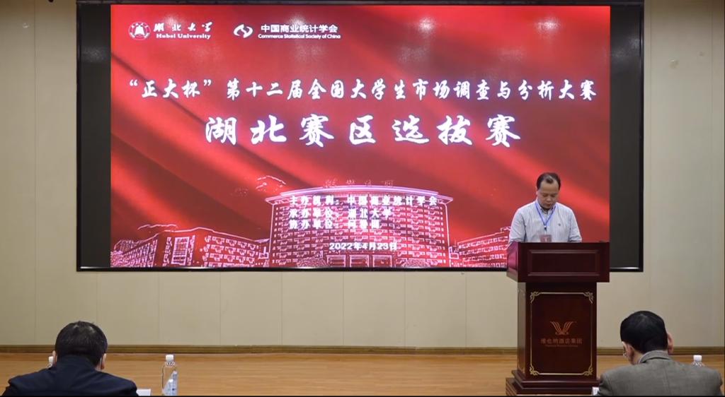 此次大赛由教育部高等学校统计学类专业教学指导委员会、中国商业统计学会共同主办,华中师范大学、湖北大学承办,共有来自40所学校的352支团队参加比赛。比赛分为知识赛和实践赛两个环节,知识赛为个人赛,采取在线网考方式。知识赛合格选手可组队参加实践赛,省级实践赛则采用报告评审+线上视频展示和实时答辩。