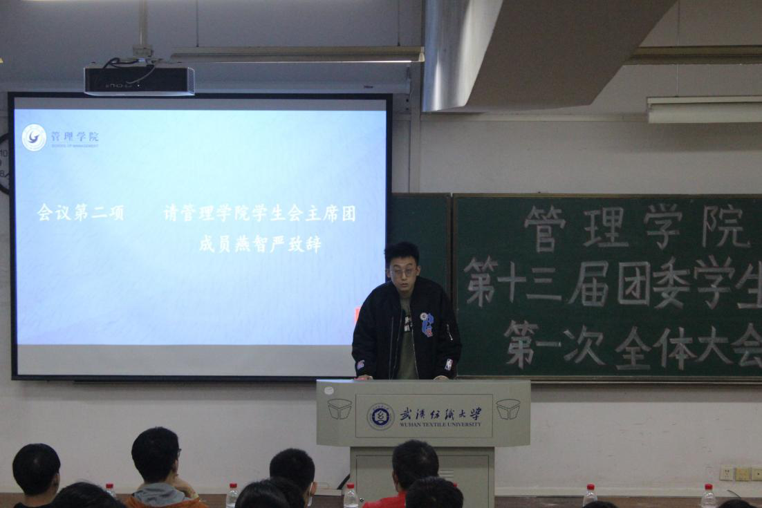 威廉希尔体育团委学生会主席团成员燕智严代表学生会主席团向新加入学生会的2022级学生会预备人选表示热烈欢迎,并表示将与大家一起在接下来一年的时间里共同努力、共同进步,创造管院新的辉煌,同时向各位预备人选们提出三点要求,一是铭记责任,为自己的选择负责,为管院团委学生会负责;二是遵守学校规章制度,尤其在当今网络信息时代,更要规范自己的言行;三是要平衡好学习和工作。