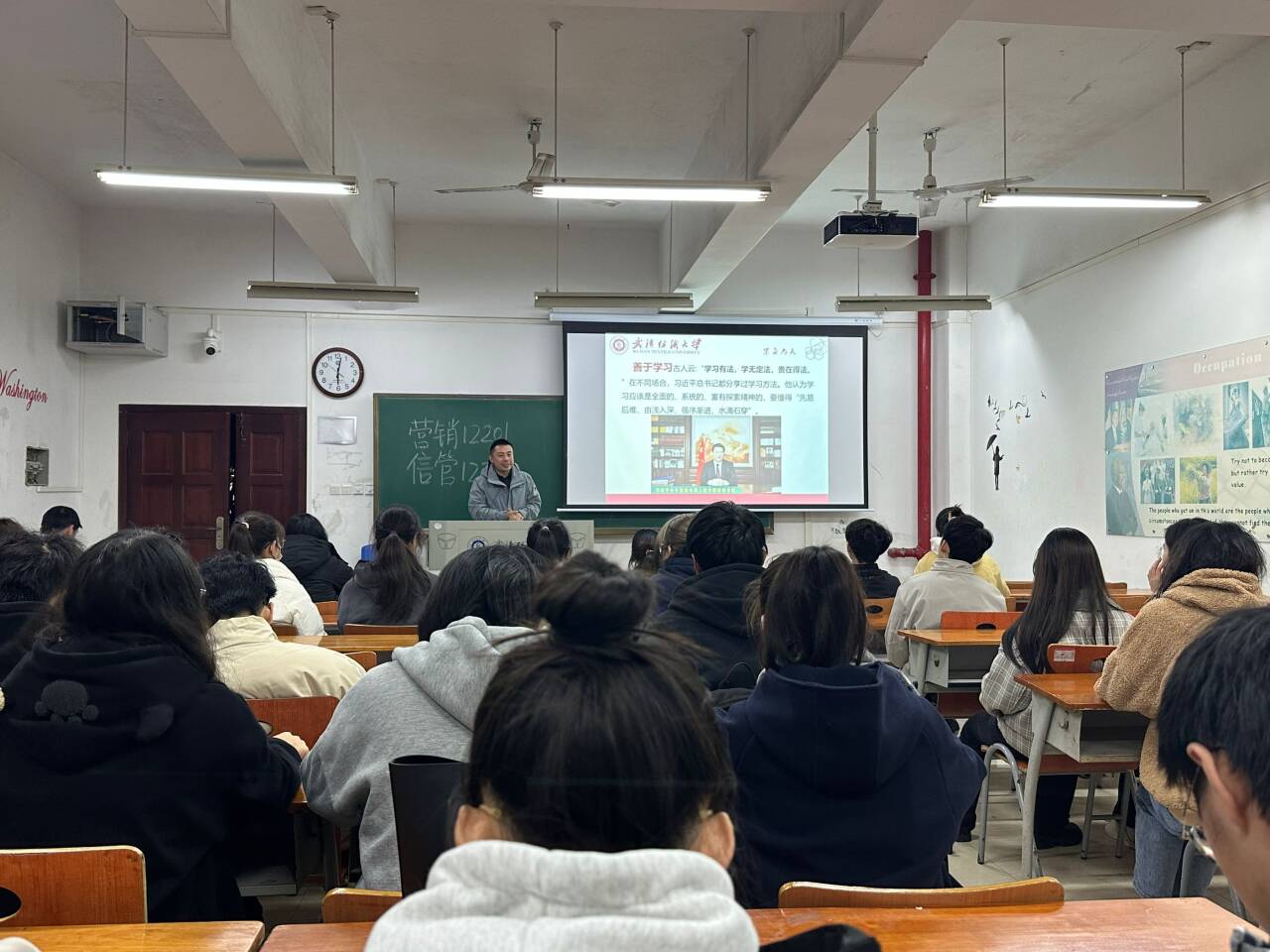为提升学生奋斗意识,11月12日晚上,威廉希尔体育开展“向榜样学习”主题班会,为同学们介绍身边的优秀榜样,全体辅导员及班主任参加此次班会。