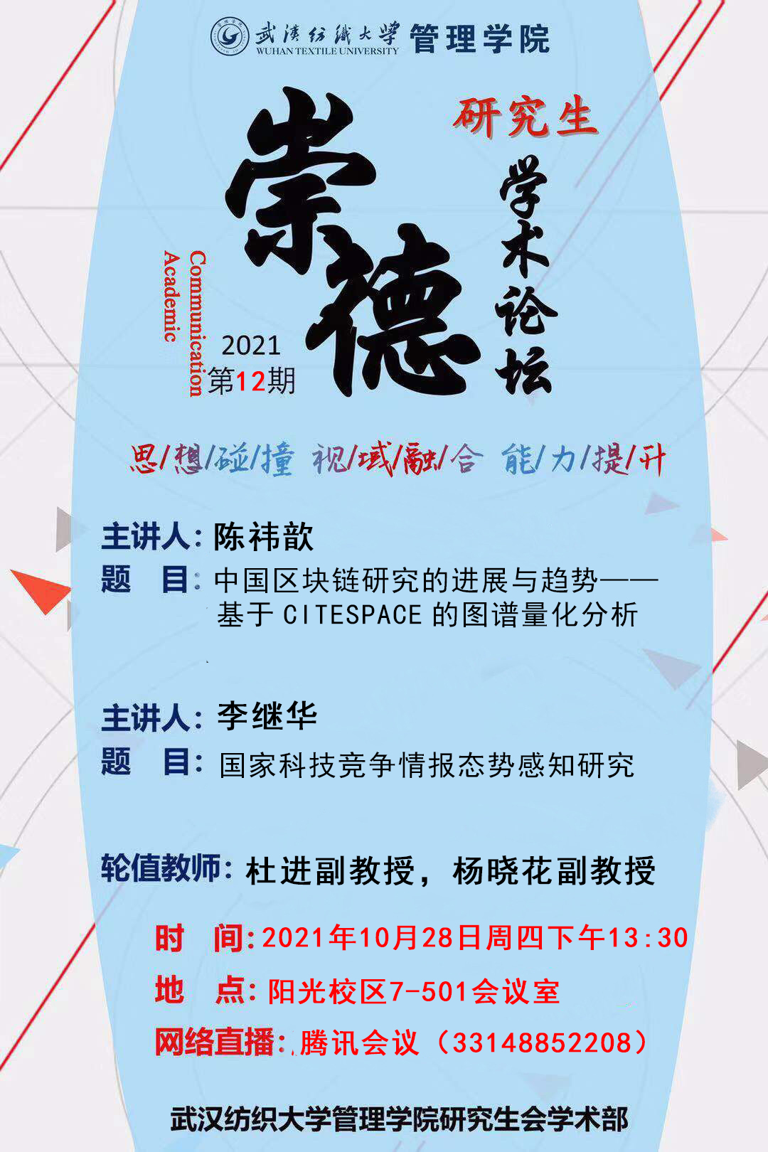 【学术通知】202112期研究生“崇德“学术沙龙