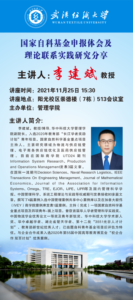 学术讲座:国家自科基金申报体会及理论联系实践研究分享