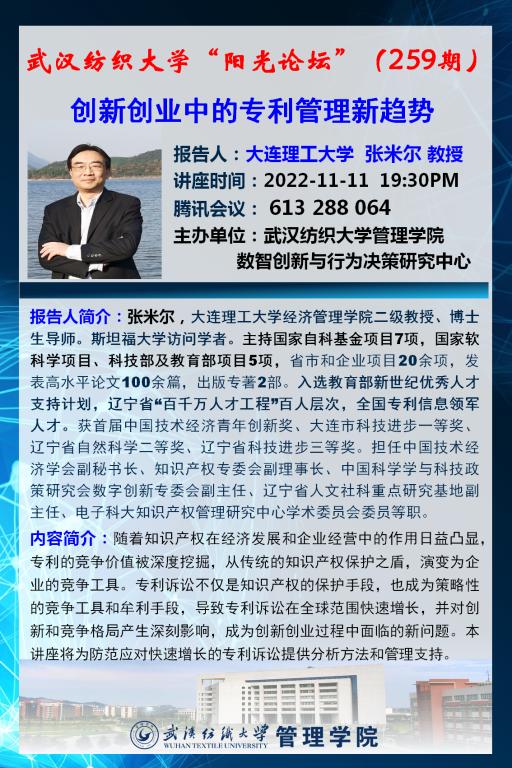 学术讲座预告:创新创业中的专利管理新趋势
