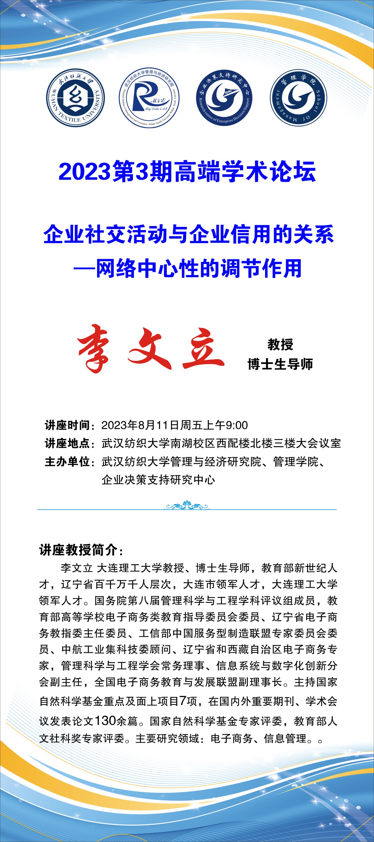 学术预告第437期威廉希尔体育:企业社交活动与企业信用关系-网络中心性的调节作用