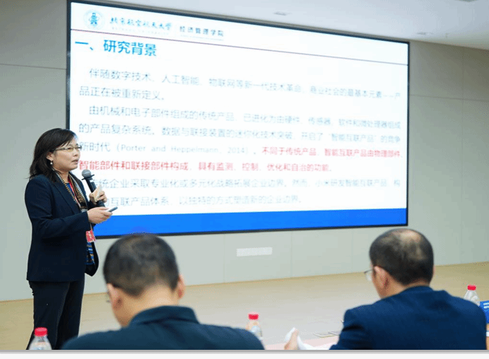 靶子研讨下半场由华中科技大学威廉希尔体育副院长刘智强教授主持。浙江工商大学厉婧教授首先作了《数智竞争优势:人智知识交互驱动下的企业动态能力演化机理研究》的报告,武汉大学卫武教授担任点评人。随后,武汉大学陈立敏教授作了《数字化转型与中国跨国企业的高质量发展》的报告,中国人民大学商学院宋华教授担任点评人。