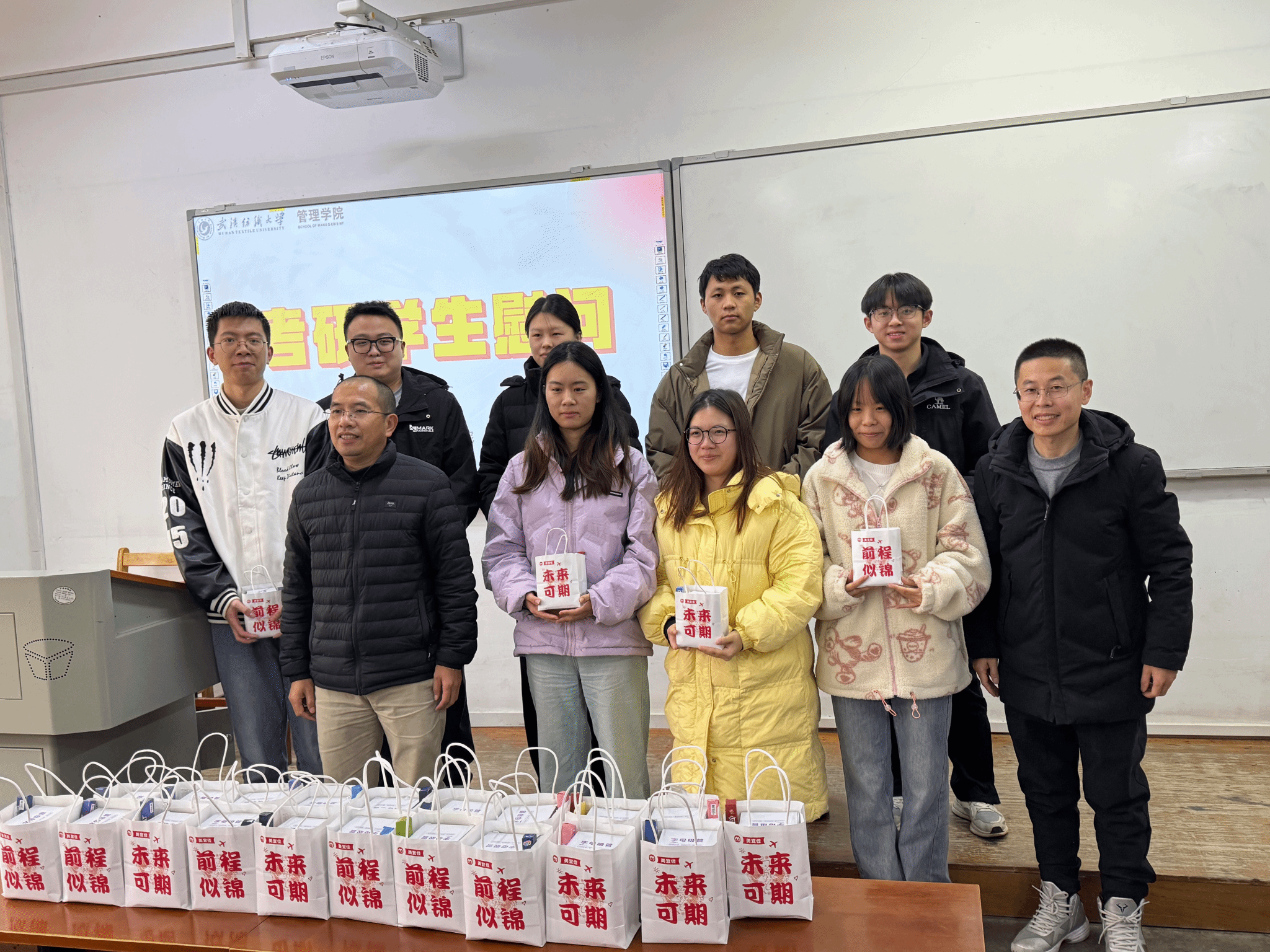 耿迪提醒同学们在复习期间学会调整心态,注意劳逸结合,有任何问题可及时与学院老师联系。活动最后,各位老师为同学们分发了精心准备的慰问礼包,礼包承载着学院对考研学子深深的祝福,祝福大家都能金榜题名,成功上岸。