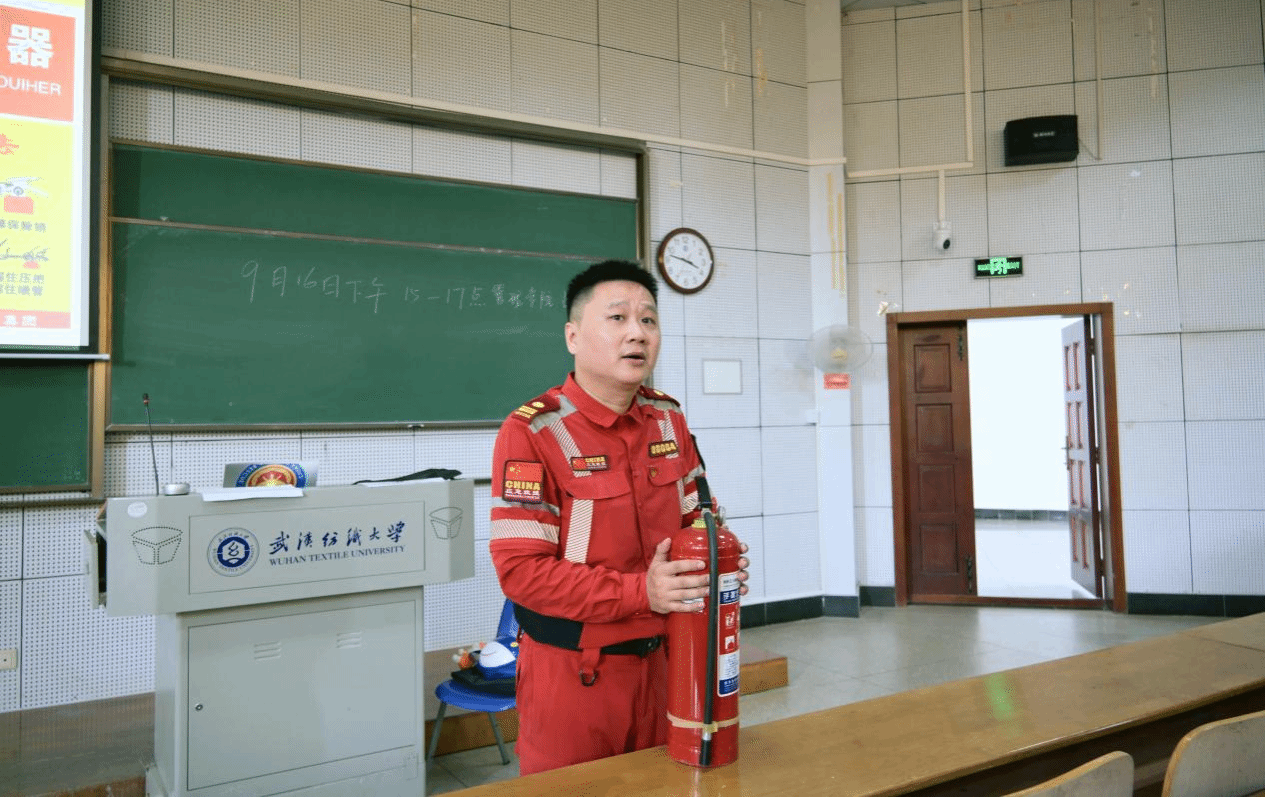 同时他还重点讲解了消防器材的正确使用方法,并邀请了部分同学进行实操体验,确保大家在关键时刻能够“会报警、会疏散、会灭火”。他特别强调“消防安全无小事,防患未然是关键”。他提醒新生日常要养成“睡前检查电器电源、离开实验室关闭设备开关”的好习惯,牢记校园消防报警电话与宿舍、实验室的疏散通道位置,做到“会报警、会疏散、会灭火”,在遇到险情时既能保护自己,也能协助他人安全撤离。