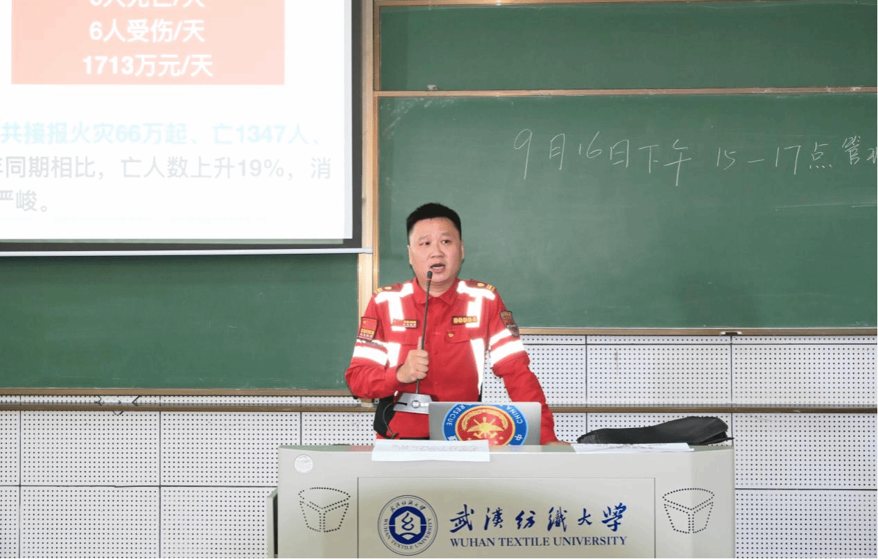 消防专员围绕“校园消防安全核心风险点”展开系统讲解。他结合高校消防安全事故的典型案例,将理论知识与真实场景深度结合。针对宿舍用电安全,专员通过图片与短视频,直观展示了违规使用电热杯、电暖器等大功率电器,以及私拉乱接电线、长时间给充电宝 “过夜充电” 等行为引发的短路、起火事故。他不仅指出了常见的安全隐患,更讲授了科学的预防和应对措施,提示同学们养成良好的用电用火习惯,遵守校园消防安全规定。