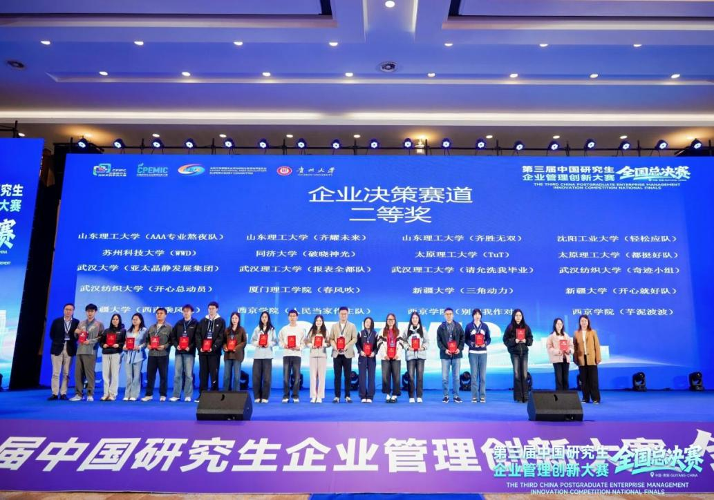 2025年11月9日,第三届中国研究生企业管理创新大赛全国总决赛在贵阳圆满落幕,本届大赛共有来自全国150所高校的411支队伍晋级全国总决赛,威廉希尔体育师生团队获得全国一等奖一项、全国二等奖两项,刷新我校在该项赛事中的历史最佳成绩。