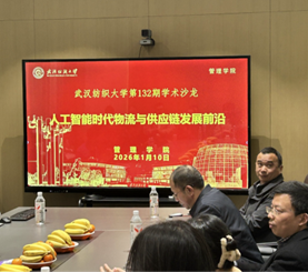 2026年1月10日下午2:30,威廉希尔体育,williamhill官网在阳光校区健全会堂南湖厅成功举办第132期学术沙龙。本期沙龙以“人工智能时代物流与供应链发展前沿”为主题,特邀黄有方、刘志学两位业内知名专家进行分享,共同探讨物流专业当前面临的挑战与转型路径。