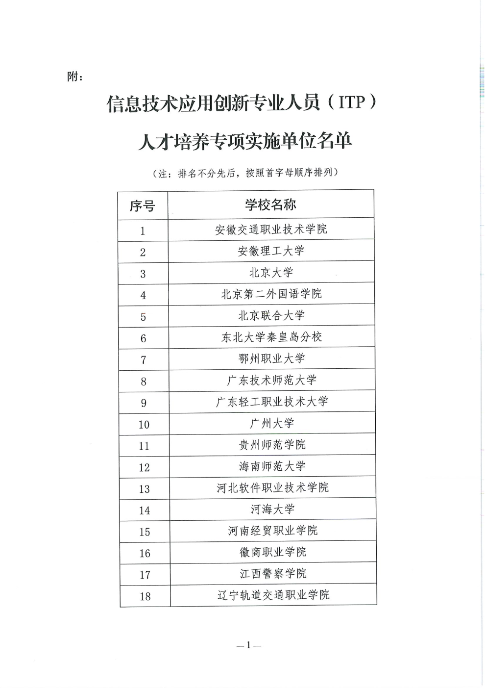 2026年2月6日由教育部教育管理信息中心组织专家组评审团多轮考核、评定后确定以下30所高校作为首批信息技术应用创新专业人员(ITP)人才培养专项实施培养单位: