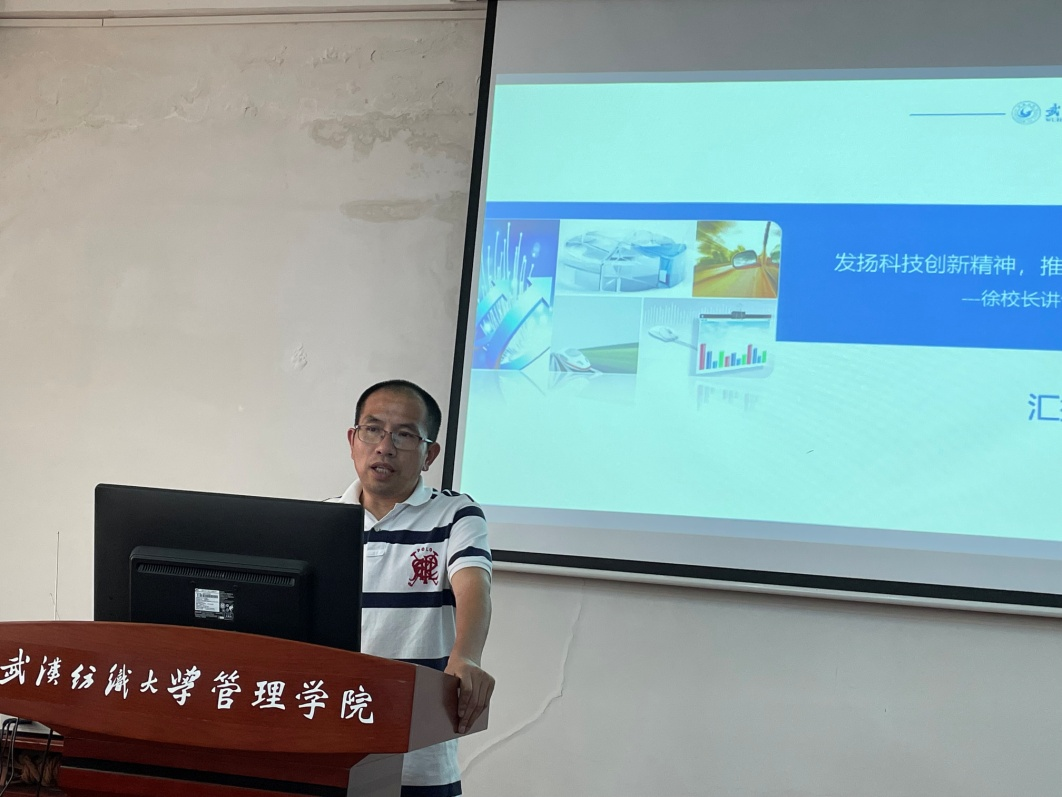 会议开始,吴金红院长传达了学校2022年科技创新大会会议精神,重点学习了校长徐卫林院士在大会上发表的题为《发扬创新精神,激发科研活力》的讲话,围绕讲话精神作了《发扬科技创新精神,推进管院一流学科建设》的发言,他首先表彰了我院此次科研获奖人员,其中周兴建获科研成果获奖(培育)计划社会科学类一等奖,曹勇获科研成果获奖(培育)计划社会科学类二等奖,余牛、夏火松获得科研前沿探索标兵,并表示祝贺。他指出,学院要围绕“科研成果、学科平台、学科特色、学科队伍”的发展思路,建强科研行业背景、研究成果、平台发展、人才引进的“四大支柱”,实现学院标志性成果、学科实力、与第一方阵高校的交流与学习的“三大突破”,夯实科研文化建设和制度建设的“两大基石”,实现学院进入一流学科行列的目标。他要求,广大教师要高质量推进学院科研工作,努力取得好成绩。