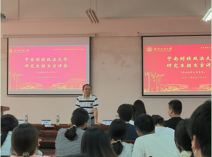 熊平副院长首先向学院领导及师生介绍了中南财经政法大学的历史,信息与安全工程学院研究生教育的发展现状,研究方向和招生规模等情况。