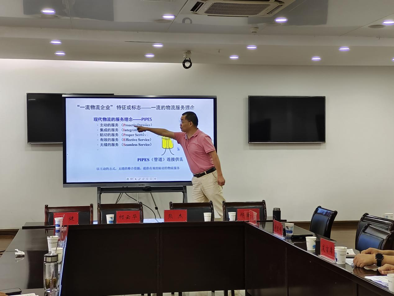 同时,范学谦副教授就鄂州市现有的物流行业发展现状及存在的问题进行深刻分析,对物流企业发展战略、现代物流服务理念、物流企业文化建设等与现代物流企业管理优化主题息息相关的产学研结合发展模式与各代表进行分享探讨。