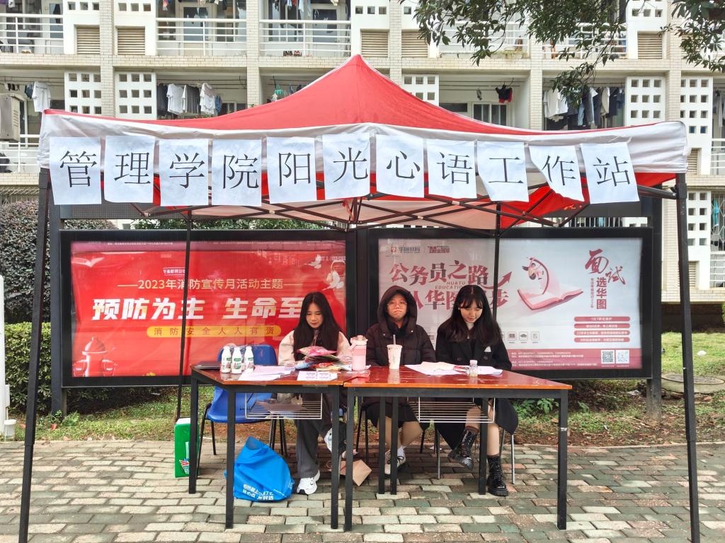 In order to create a relaxing and pleasant festive atmosphere and promote the construction of a harmonious campus, at 9:00 a.m. on November 11, the Sunshine and Whispering Psychology Workstation of the School of Management carried out a point-setting activity next to the first cafeteria, organizing a series of colorful activities.
