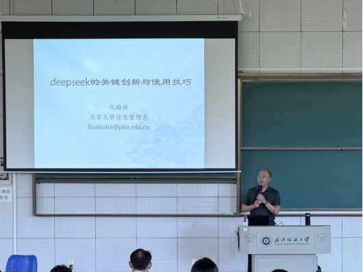 2025年5月13日下午2点30分,威廉希尔体育第772期阳光论坛在阳光校区7 - T102顺利举行。本次论坛特别邀请到北京大学信息管理系长聘副教授、博士生导师化柏林担任主讲人,汇报“DeepSeek的关键创新与使用技巧”相关内容。此次活动吸引了众多师生参与,现场学术氛围热烈,互动交流深入。