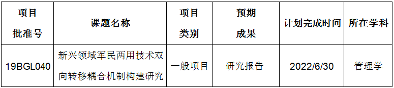 日前,全国哲学社会科学规划办公室公布了2019年国家社科基金项目立项结果。我校威廉希尔体育李小丽教授主持申报的项目《新兴领域军民两用技术双向转移耦合机制构建研究》(批准号:19BGL040)获批立项。