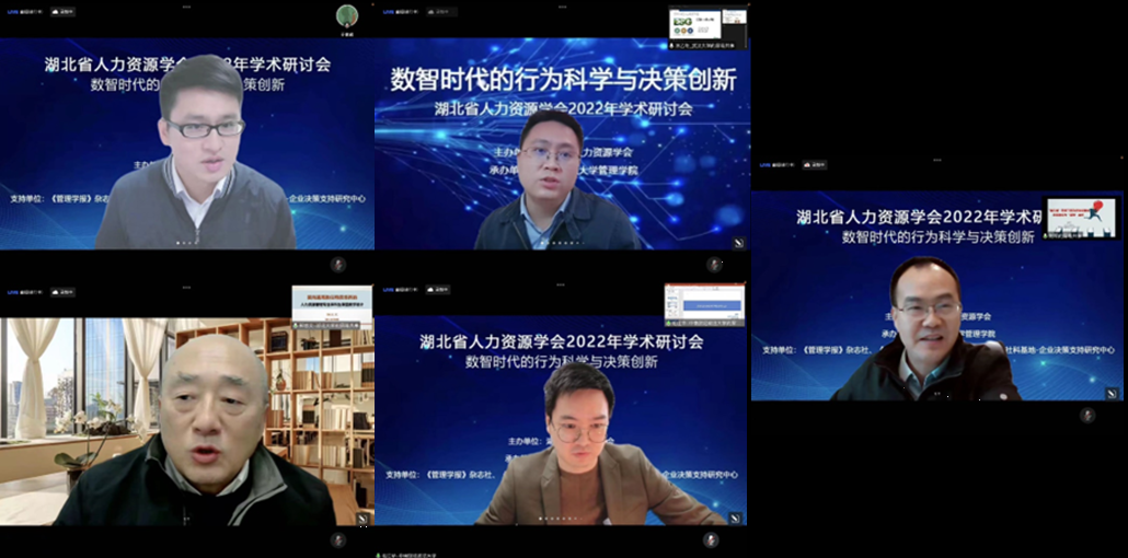 为了更好把握新形势带来的机遇,更好迎接新时代的新挑战,服务国家重大战略需求,汇集和展示行为科学等学科领域的最新研究成果,进一步促进我省人力资源管理领域的交流和学科发展。2022年11月13日,湖北省人力资源学会2022年年会在线上召开,本次会议的主题是“数智时代的行为科学与决策创新”,会议由湖北省人力资源学会主办,由威廉希尔体育,williamhill官网承办。旨在为相关领域研究者、教育教学工作者、实践工作者提供交流平台,活跃科研教学思路和实际管理工作思路,拓展学术视野与多种形式的合作空间。本次会议邀请了省内人力资源领域的众多专家学者及企业嘉宾出席研讨,也邀请了省内各个兄弟院校相关领域的师生参与会议,会议当天腾讯会议参会人员256人次,直播链接观看人员267人次,共计540多人参与到这次年会活动中来。本次会议共收到高水平投稿60多篇,一定程度代表了湖北省人力资源领域较为先进的研究水平。会议开始由威廉希尔体育,williamhill官网院长吴金红教授主持。