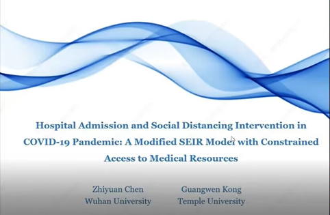 Then, Professor Chen Zhiyuan of Wuhan University made a report entitled "Research on the hierarchical admission strategy and social distance strategy of three hospitals under the COVID-19 - based on the infectious disease model with limited medical resources" against the background of the COVID-19. This study introduces an infectious disease (SEIR) model considering limited medical resources, and discusses how three hospital admission policies (hierarchical medical system, hybrid medical system and shelter medical system) affect the process of disease transmission and the number of deaths and infections.