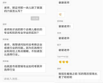 课程的最后,同学们积极踊跃地提出自己的问题,李老师耐心地为大家解答疑惑,并鼓励同学们提前进行职业测试,积极行动多投简历。同学们纷纷表示,此次培训收获很大,不仅了解了如何更好地制作简历,如何在面试的过程中脱颖而出,也明白了要不断提升自己的综合能力,成为“有能力的好人”以顺利求职。