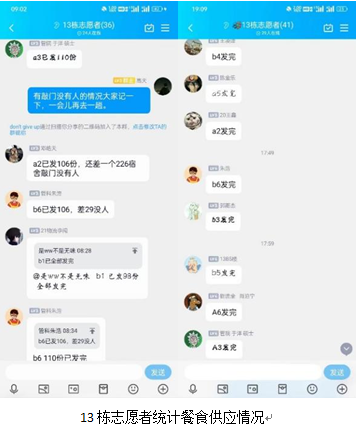 2021级物流工程与管理专业的研究生柴源,作为入党积极分子的他在知道封楼之时便第一时间报名参加楼栋志愿者,想要为学校和13栋同学尽一点绵薄之力。在短短几天的志愿服务经历中,他深刻体会到防疫工作的不易。早晨七点便在寝室楼下负责维持核酸检测现场的秩序,提醒同学们以寝室为单位戴好口罩下楼做核酸。他组织做完核酸后,与同是志愿者的蒋志博负责13A4楼的物资供应,在确定好总人数后便开始把餐食搬到四楼,然后逐个敲门送餐并做记录。在志愿工作中,虽偶有疲累,但他内心始终充实,用实际行动贡献自己的力量。