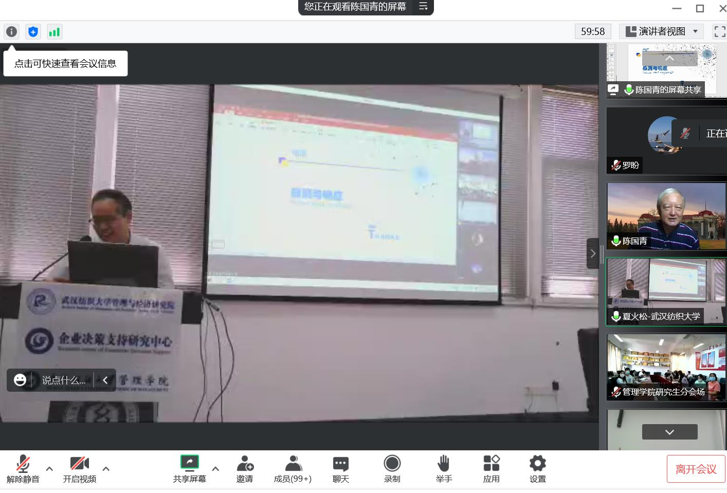 9月15日下午,清华大学资深教授陈国青接受我院邀请作线上讲座,拟通过本次讲座为我院研究生分享数智化背景下的知偏识正洞察—机器学习与用户行为中的偏差问题。本次讲座由夏火松教授主持,威廉希尔体育部分教师出席,全体研究生积极参会。
