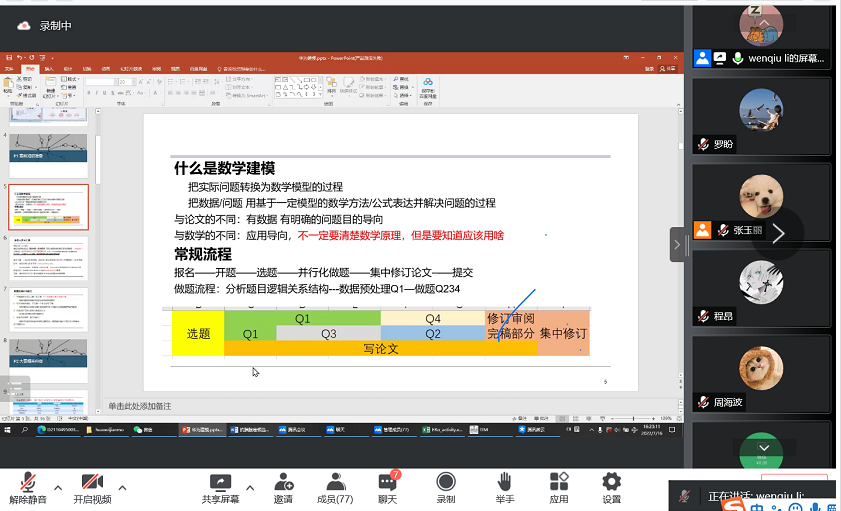7月16日下午,我院以线上形式举办了数学建模经验分享会,旨在使学生对数学建模竞赛建立更深刻的认识,鼓励广大学子积极参加数模竞赛,同时让同学们从获奖同学的参赛经验及心得体会中吸取经验,提升自我能力。本次活动邀请了在“华为杯”第十八届中国研究生数学建模竞赛中获奖的李问秋同学为大家分享经验。本次分享会由张玉丽担任主持人,威廉希尔体育部分教师及全体研究生积极参会。