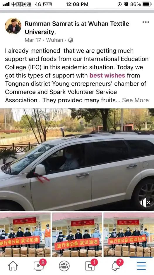 作为一名孟加拉国留学生,鲁曼在他所在的年级其他21名同学全部回国的情况下,他义无反顾地选择了坚守武汉,并加入到志愿者队伍。